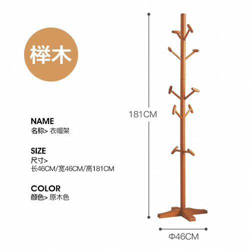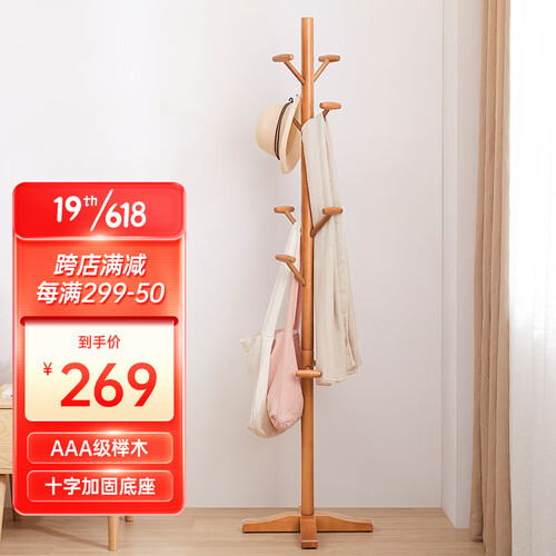 家逸 实木落地衣帽架