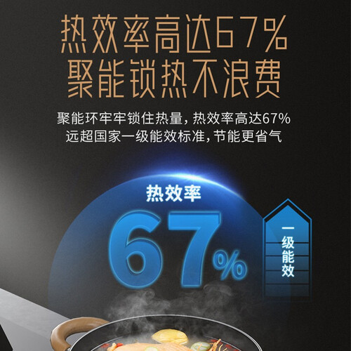 炫黑色磨砂质感的钢化面板,百搭家居风格易清洁,高效聚能锁温充分燃烧节能更省气,烹饪的美食香气诱人。