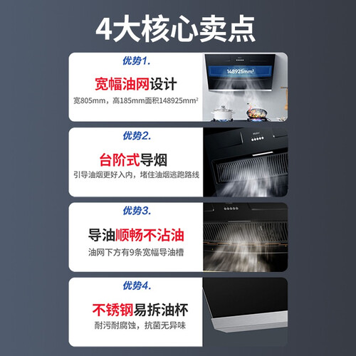 选用三防电机,经得起油烟的考验,稳定性能让您没有后顾之忧。采用不锈钢易拆油杯,日常洗护更方便,让您不再为清洁烦恼。