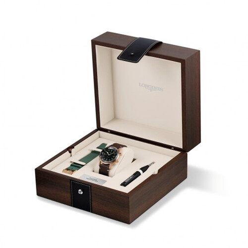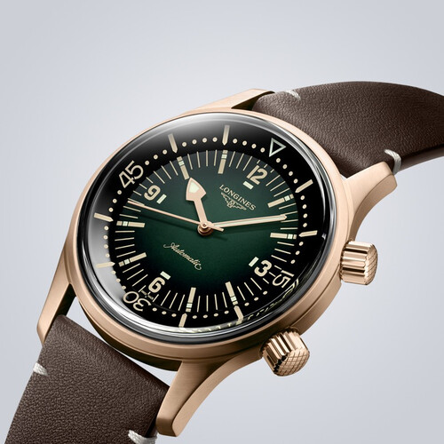 创新采用青铜材质,与渐变的绿色表盘相得益彰,像复古经典致敬,机芯内置硅游丝,走时更稳定,搭配棕色皮质表带,凸显儒雅气质。