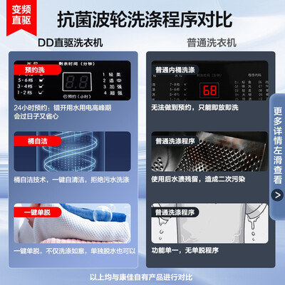 大容量洗涤,大件衣物都能一次搞定,告别分批多次洗涤烦恼。直驱变频电机,精准控速,长久使用节能降噪,寿命长久。