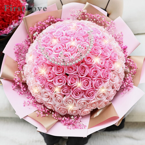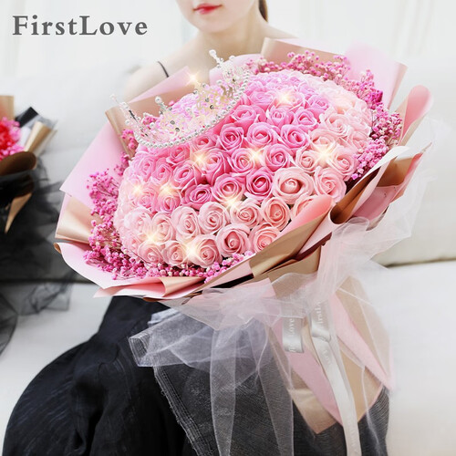 精致浪漫的皇冠与99朵粉玫瑰搭配,不仅象征爱情和美丽,还有着十足的女王范,送礼好选择。