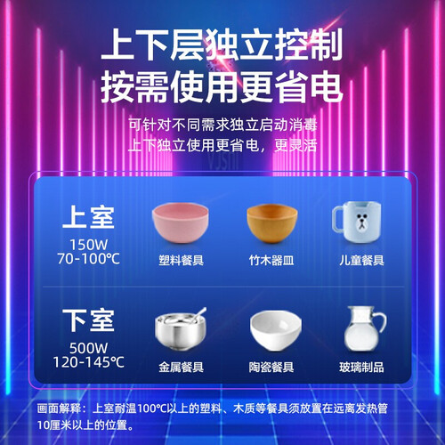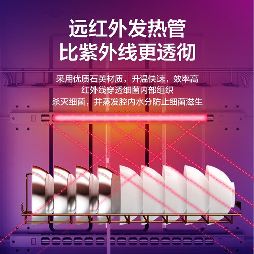 采用钢化玻璃面板,透明美观,内部消毒状况一目了然,同时不易藏污纳垢。具有高除菌率,快速去除细菌,守护餐具卫生。