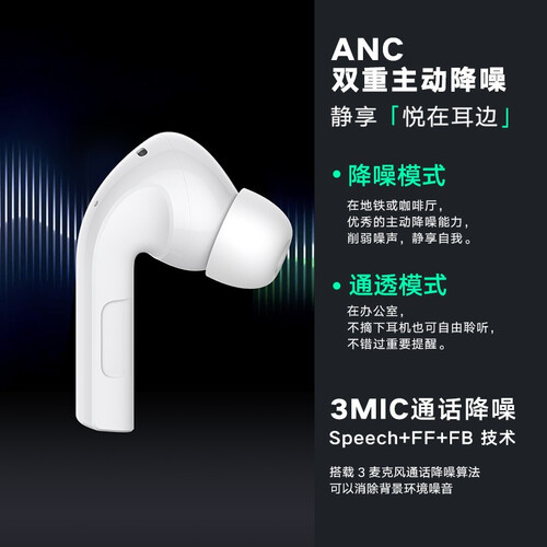 搭载ANC双重主动降噪技术,能够实时检测外界的声音,通过内置的降噪算法进行处理,营造安静空间。大容量电池,10小时续航。