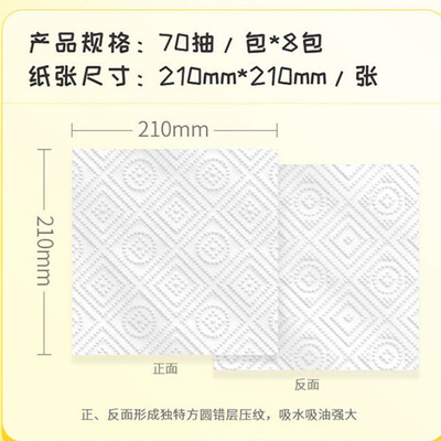 拥有3D立体导流精心设计,具有独特的方圆错层压纹细节,吸水吸油十分的强劲。结合长短纤维黄金配比,特别的厚实柔韧。