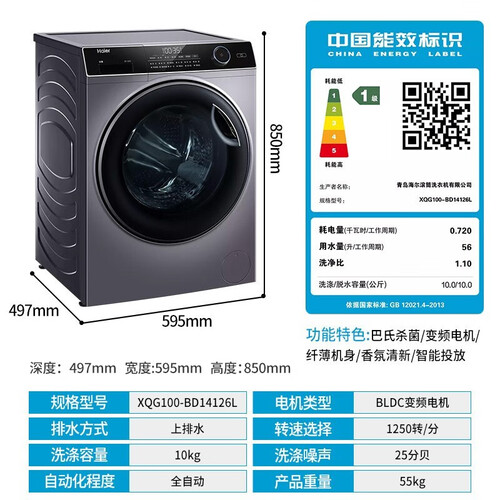 大容量,可以让您置放较多的衣物,避免反复清洗;配有清新程序,能够有效去异味,衣服芬芳穿着更愉悦。
