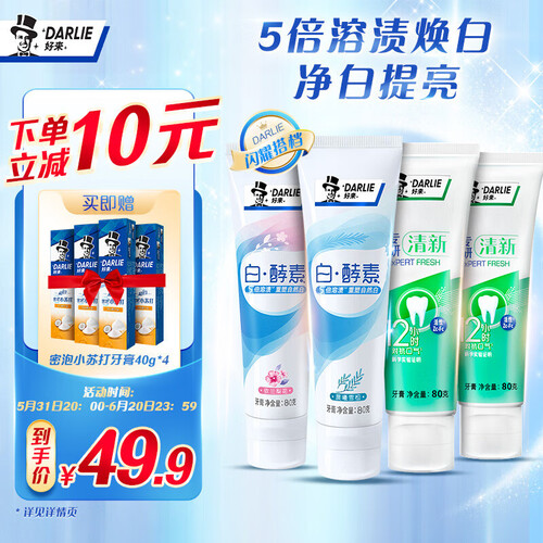 牙膏中添加了天然酵素成分,针对不同牙渍问题均有显著的效果。它还能保持牙齿亮白,让您随时随地绽放闪亮笑容。