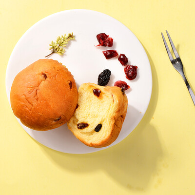 特别添加蔓越莓和提子粒,让浓郁果香自然渗透在面包之中,开袋就可闻到沁人醇香。松软的黄金外皮,香糯可口。