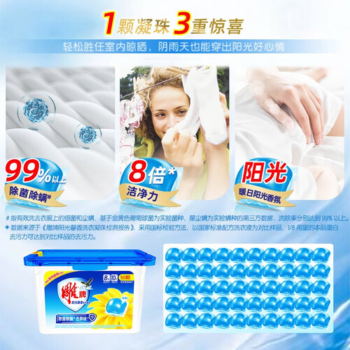 阳光馨香洗衣球,能实力搞定异味,让衣物清香扑鼻;同时具有除螨除菌能力,让洗后的衣物更洁净卫生,穿着更舒适。