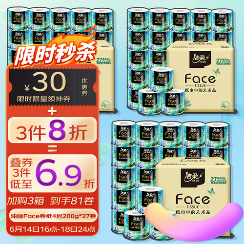 洁柔油画系列加厚4层卫生纸