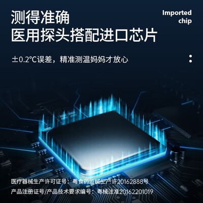 内置医用级感温探头,对准额头中心后,一秒就能测量出体温;结合上进口的芯片,数据准确到0.1℃,避免误差的发生。