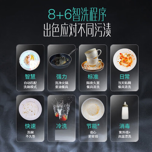 外部采用黑色钢化玻璃,更加容易清洗,同时光滑又美观。高温强力消洗,强力瓦解碗盘的油污,让你的餐具更加干净。