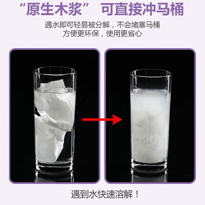 只选用原生木浆为原料,具有良好的溶解性,如厕后可直接丢入马桶不堵塞。含有天然维生素E成分,擦拭后保持肌肤娇嫩光洁。