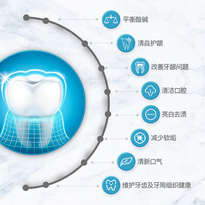 蕴含菊花和丁香酚萃取物,深入口腔每个角落,清焱护龈,改善牙龈问题;搭载小苏打成分,温和清洁,淡化牙渍,还原牙齿净白。
