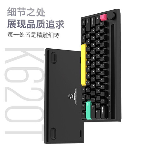 键盘内置4400mA大容量锂电池,待机时长约8000小时。大键位采用卫星轴设计,方便更换键帽,享受DIY乐趣。