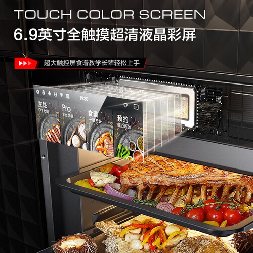 具有双动力烘烤模式,双面都能均匀受热,让食物达到外焦里嫩的状态。采用6.9英寸的触摸屏显示,功能一目了然。