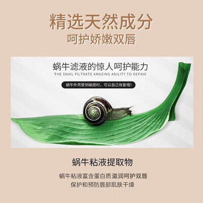 含有蜗牛原液的润唇膏,带给双唇出色的滋润效果,避免干燥起皮,方便涂抹口红。无色的它适合口红打底,避免混色。