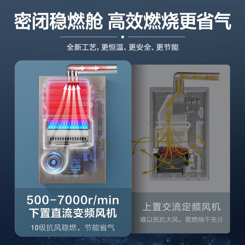 水伺服恒温技术,精准调控进水量,恒温水温温度,方便全屋多点用水。智能控风控氧功能,减少CO隐患,呵护家人放心使用。