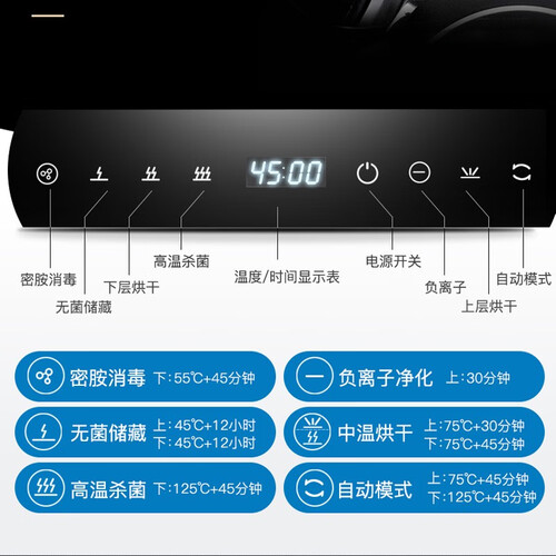 释放负离子装置,分解异味抑菌除菌保持内部空气清新。宽频聚能光波,强力杀灭细菌真菌,洁净卫生安全放心。
