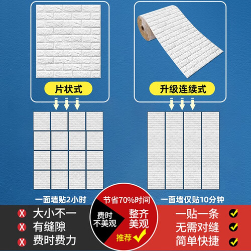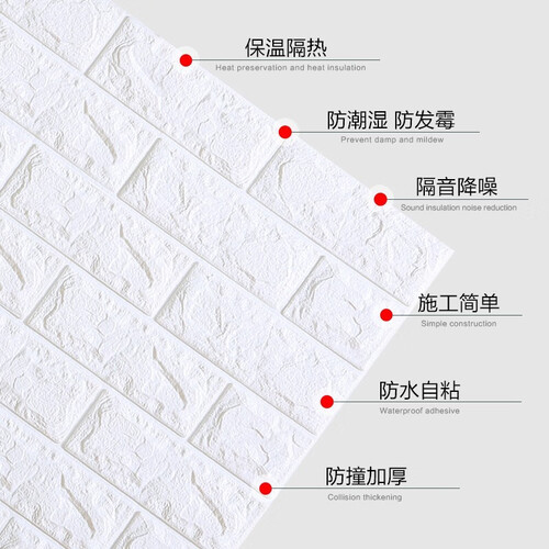 南极人白色砖纹自粘墙纸