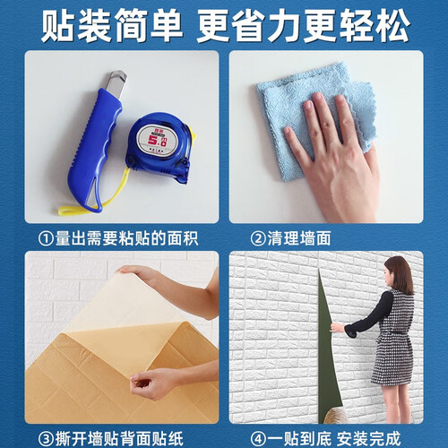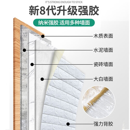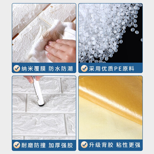 进口环保胶,不含有毒物质,使用安全,保障家人健康。选用防水防潮材料制作,不怕水渗透墙体,轻轻一擦即可干净。