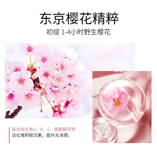 蕴含樱花精华成分,活性度高渗透能力强,让每一寸肌肤都得到充足养分。多种维生素加持,褪去沉积的色素,还原昔日干净美肌。