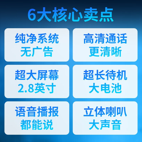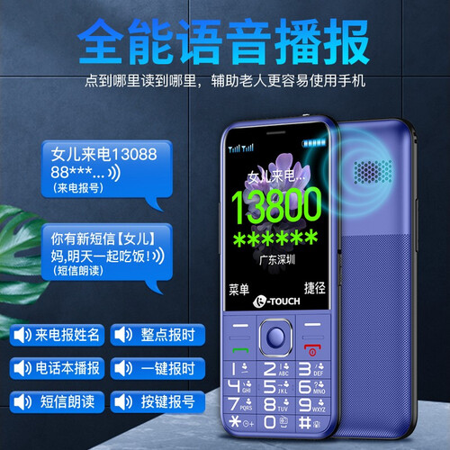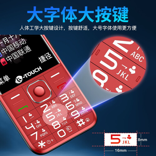 大屏幕清晰呈现大字体,老人更容易看清内容,增大图标方便老人选择,喇叭声量大通话无阻碍,磨砂质感按键提升舒适感。