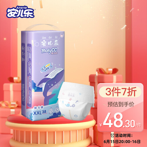 进口木浆搭配吸水SAP高分子,高效吸收强劲锁水,不反渗,屁屁持久干爽。搭载轻盈空气感大环腰,柔软贴身,释放宝宝好动天性。