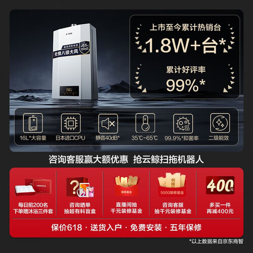 采用日本进口cpu,精准的控制温度,防止温度大幅度波动,享受舒适沐浴。宽频热交换技术,有效提升加热速度,减少等待。