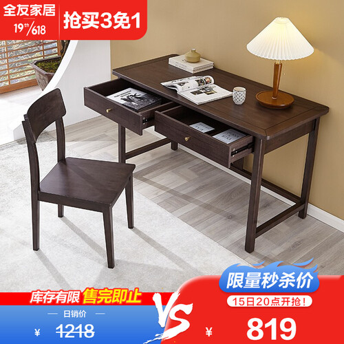 全友储物双抽新中式书桌