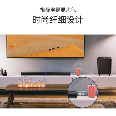 搭载8英寸的木质无线下沉式低音炮,在家观影也能感受到震撼的音效。采用130W的强劲功率,尽情体验到非凡音质。