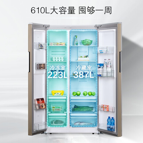 搭载省电模式变频器,可有效节约电力资源,家庭环保之选。支持610L海量容积,整体容纳大幅提升,轻松囤物。