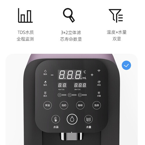 采用天然矿化富锶滤材,滤出的每滴水都健康鲜活。水箱缺水机器会停止制热,防止干烧损坏内部组件,提高安全性。