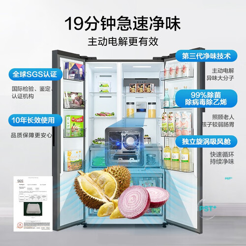 一级能效更节能省电,低耗电运行,满足长久保鲜的需求。搭载PST+智能净化科技,急速净味,防止食材相互串味。