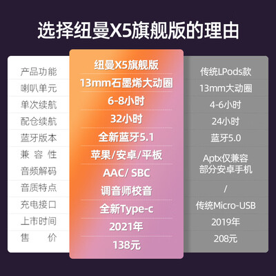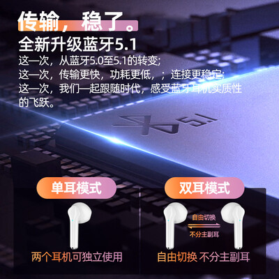 应用蓝牙5.1技术,带来更强大的高速传输效率,给您低延迟的声画体验。此外采用左右独立声道设计,听歌更有沉浸感。
