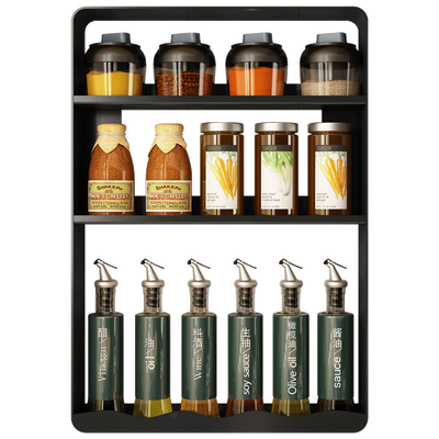 超大容量收纳空间,可轻松容纳你整个厨房的调料。加高护栏,有效守护调料瓶罐。一涂一贴,轻松挂墙,简单方便,保护墙面。