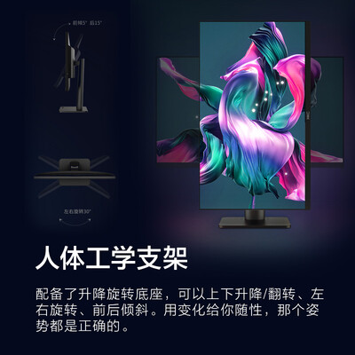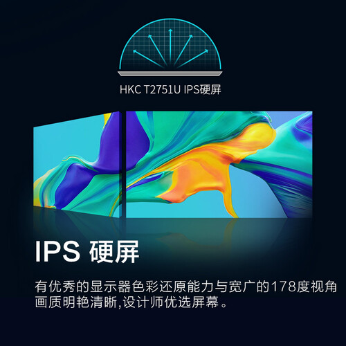 屏幕尺寸达到27英寸,搭配微边框设计,视野更加广阔,观看轻松舒适。拥有IPS硬屏搭配高分辨率,色彩逼真,画面更精美。