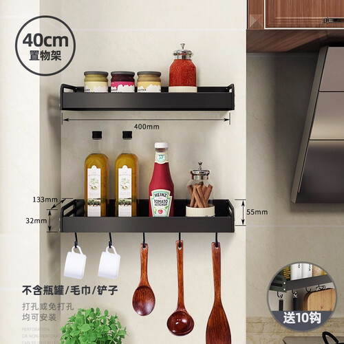 双排置物空间,可以合理收纳厨房调味料保持台面的整洁。采用环保胶水与墙面粘合,牢固承重力还不会伤害墙面。