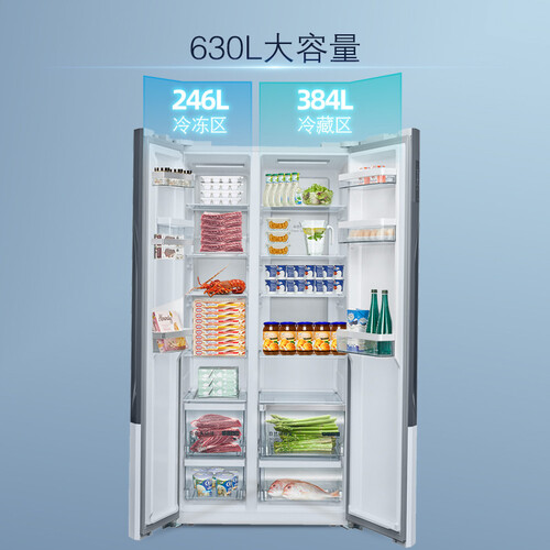 采用精控恒鲜科技,精准控温,长效锁鲜,延长蔬菜存储时间。630L大容量可轻松囤下全家人两周所需食材,无需频繁采购。