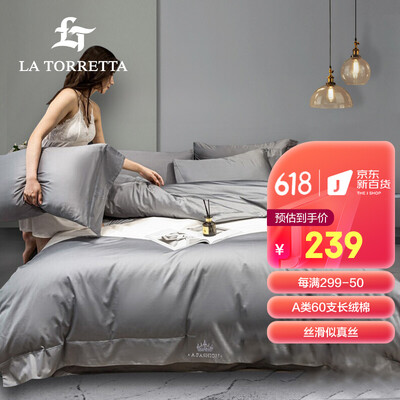 La Torretta这款60S轻奢四件套,触感丝滑,媲美真丝。超60支高织,高密度似丝绸却胜丝绸。精心针织,打造优质睡眠。