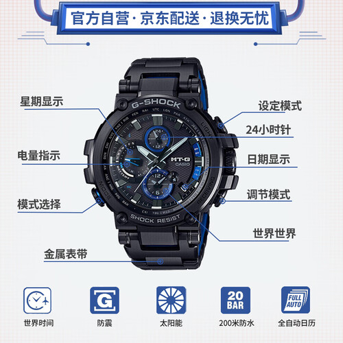 支持将太阳光、日光灯等光源转化为手表的电能,让你无需为电量操心,使用更便捷。防震加200米防水的强悍性能,无惧各种挑战。