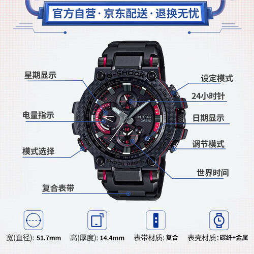 不仅拥有防震还具有200米防水的性能,日常游泳、运动无需摘下手表。表壳采用碳纤维强化树脂材料,确保轻盈的同时还坚固耐用。