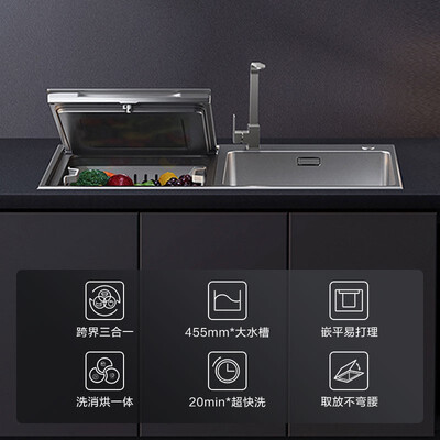 455mm大水槽设计,容量更大全家人碗筷一次搞定。搭载三挡碗碟洗功能,超快洗、强快洗及超强洗,轻松应对各种污渍。