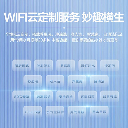 多种模式设计,轻松满足全家人的用水需求,一键调节。开机自动检测,大幅度提升使用的安全性,防止燃气泄露。