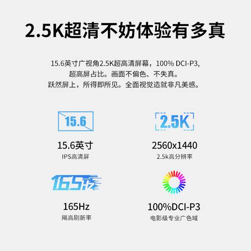 2.5K高清大屏,流畅清晰的画质带来别样的体验,身临其境。采用双风扇五铜管散热,物理方法有效散热,功率再高也不怕高热。