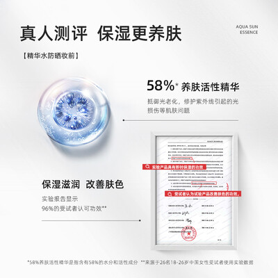 清爽的精华水质地,妆感轻薄透气,没有油腻厚重感,妆容更服帖。水柔触融技术,拥有强大的保湿力,防晒与滋养同步进行。