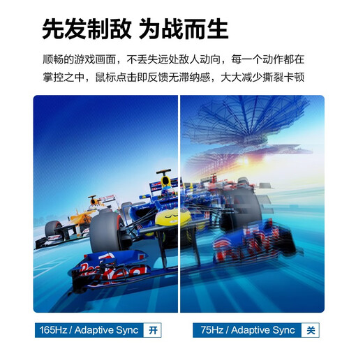 采用165HZ流速屏设计,屏幕刷新速度快,让每一帧画面在眼前清晰流淌。结合高静态对比度,游戏暗场画质也清晰明朗。