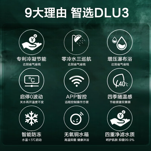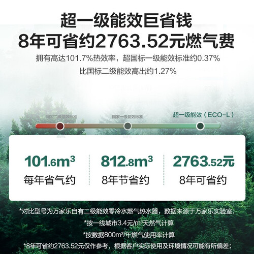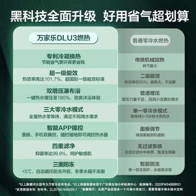 采用专利冷凝换热器,减少废气排放,符合一级能效标准。预设三大零冷水模式,简单一键切换,满足家人不同用水需求。