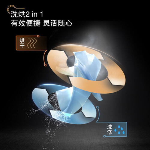 洗烘一体,可洗涤可烘干,告别阴雨天衣物难晾干的烦恼。热风清新功能,利用蒸汽去除异味、灰尘,减少不必要的水洗次数。