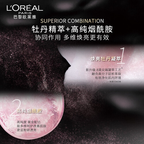 富含高纯烟酰胺成分,科学配比方式,多角度呵护娇嫩美肌,令肌肤焕发青春光彩。融入牡丹凝萃,保留牡丹的活性与养分,净化肌底。